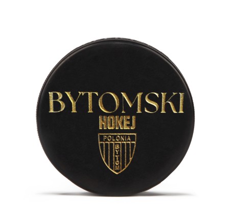 - A minimalist, matte black surface with striking gold engravings of the words 'Bytomski HOKEJ' and the classic Polonia Bytom crest.