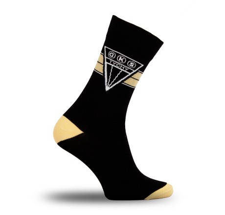 The black base accented with gold details and a prominent GKS Tychy symbol gives the socks a prestigious and contemporary character.