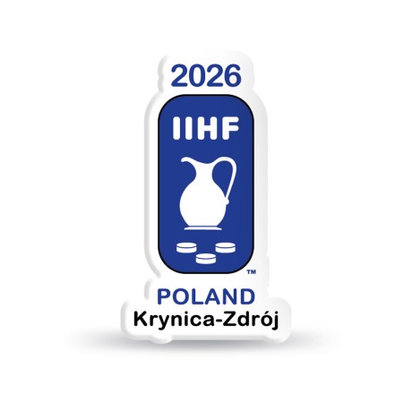 - IIHF logo and event marking Poland – Krynica-Zdrój.