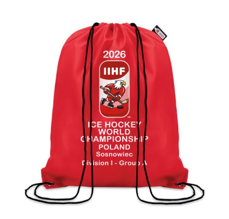 - A lightweight and practical drawstring bag created for the IIHF Ice Hockey World Championship Division IA 2026 in Sosnowiec.