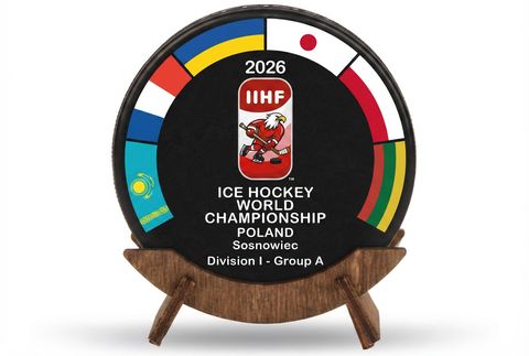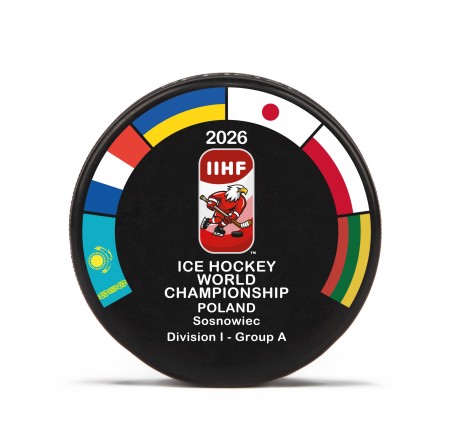 - An official hockey puck created for the IIHF World Championship Division IA Sosnowiec 2026.