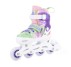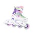 New design of kids adjustable skates for recreational and fitness skating. Middle load, beginners and advanced skaters. Skates have simple and comfortable adjustable system with skeleton side button. For skate sizes 29 – 32 there are just three 64 mm wheels because of short chassis, for other sizes there are four 70 mm wheels. Skates are equipped with ABEC 5 bearings. We deliver spare colourful laces for free.